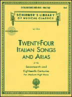 ![]() | 24 ITALIAN SONGS & ARIAS - MEDIUM HIGH VOICE (BOOK/CD). For well over a century, the G. Schirmer edition of 24 Italian Songs & Arias of the 17th and 18th Centuries has introduced millions of beginning singers to serious Italian vocal literature. | $14.95 |